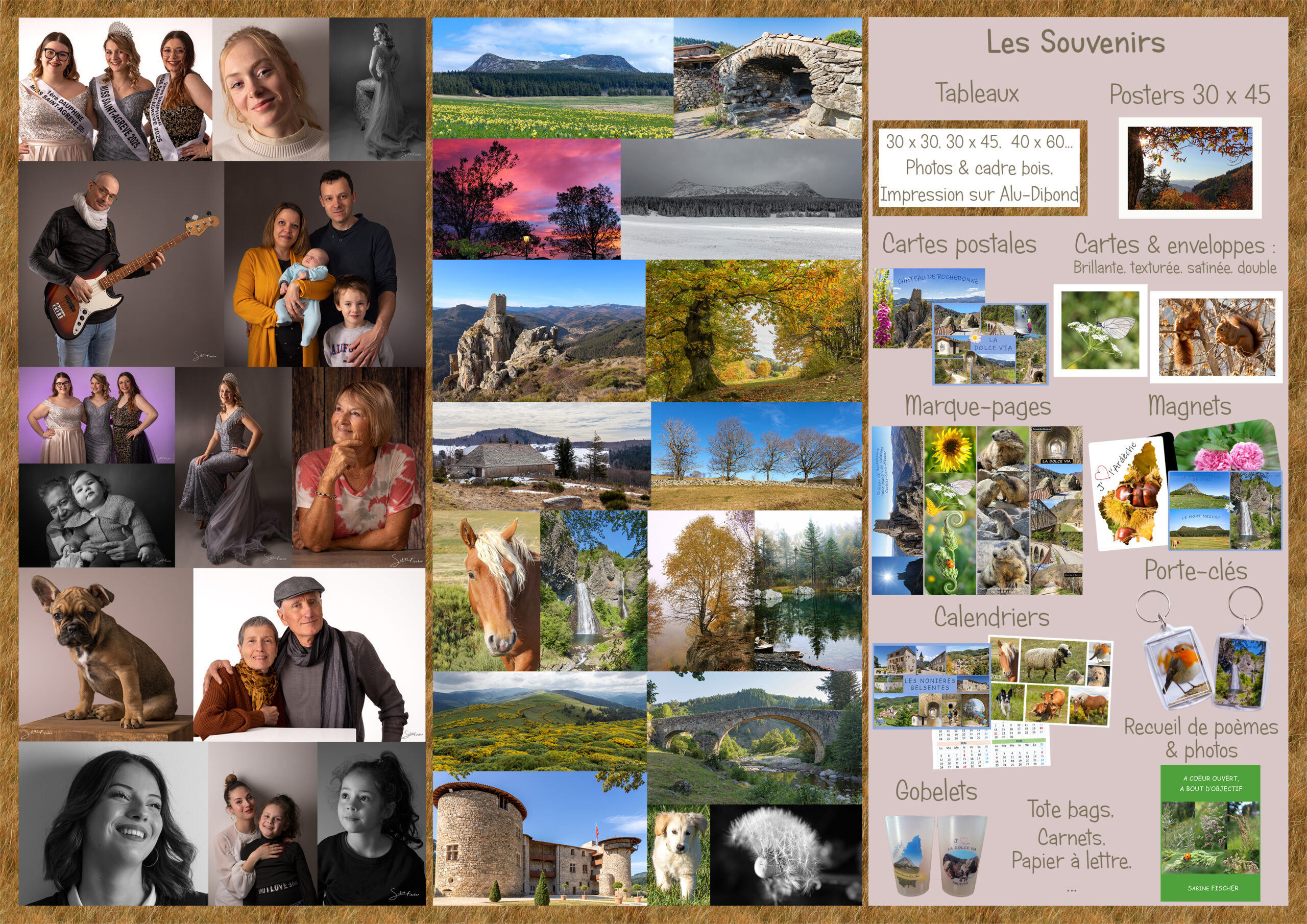 Je vous propose une gamme de calendriers à choisir depuis le calendrier de poche, au format A5 ou A4 plastifié. Ou encore le mensuel à poser ou suspendre sur commande et personnalisable.