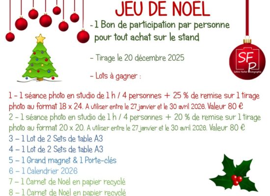 Vous trouverez des idées pour vos cadeaux de fin d’année et  des animations.