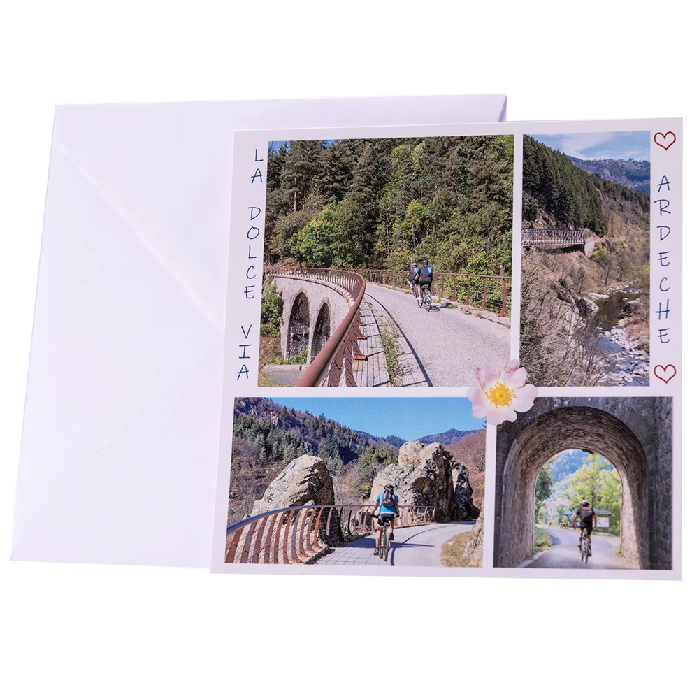 Carte postale paysage & nature – La voie douce et emblématique de La Dolce Via à découvrir à vélo ou à pied, inspirée et créée à partir de photographies prises au fil de déambulations sur cette voie verte en Ardèche.