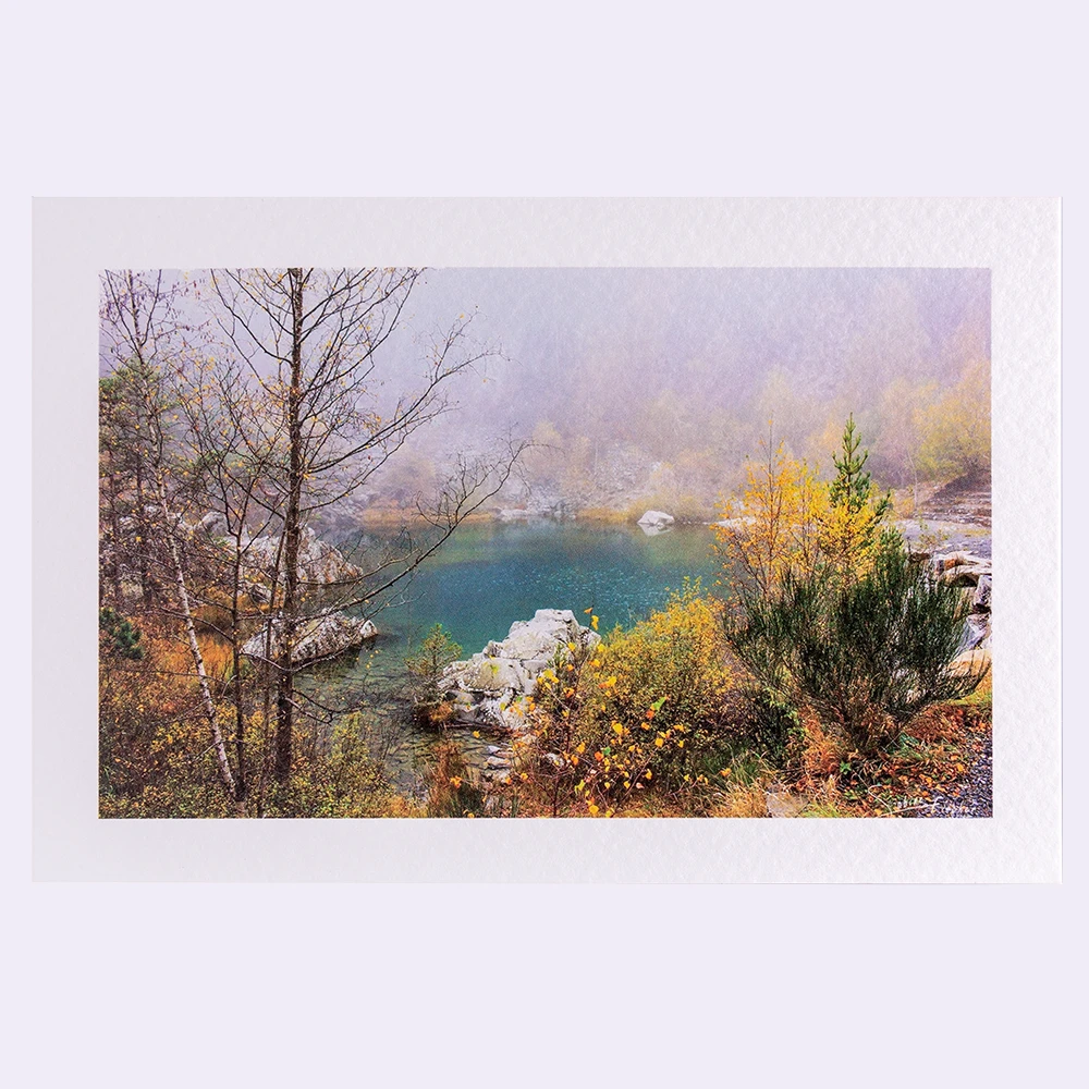 Carte rectangle gamme artistique, grain texturé – Le Lac Bleu en passant la limite ardéchoise vers la Haute-Loire. Photographie réalisée par temps brumeux.